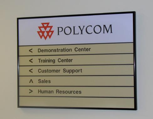 click for larger image (64K JPG)Rearranging the directory is quick and easy, simply remove the screws from the side of the frame and slide out the directory strips that need changing. While changing the directory is quick and easy, the directory remains vandal resistant since the frame and divider actually "cup" the signs in place. For even greater vandal resistance request our protective lens.