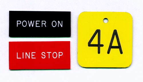 We manufacture engraved nameplates for equipment and electrical panels. These nameplates can be mounted with adhesive or screws.